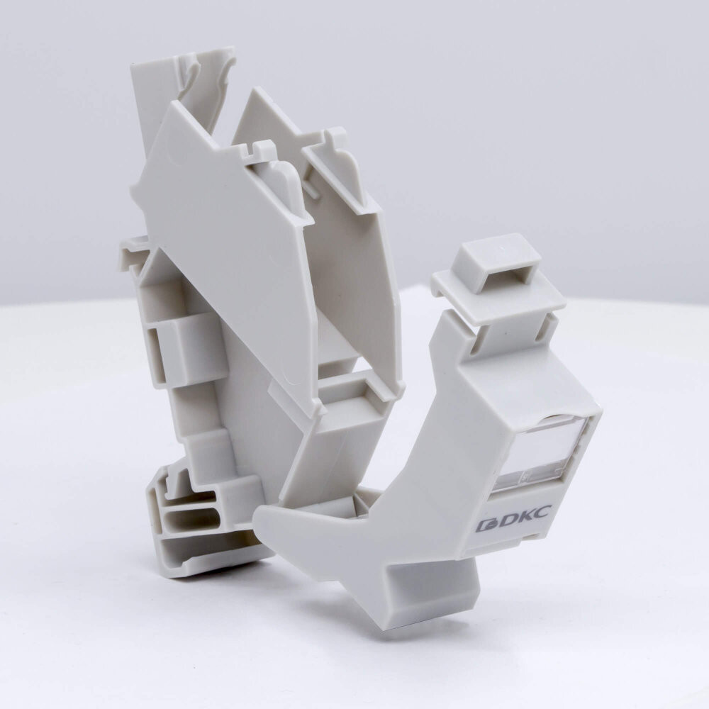 Адаптер для установки модуля Keystone с разьемом RJ45 8(8) на монтажную DIN-рейку в распределительных шкафах. Адаптер имеет размеры одного стандартного модуля согласно требованиям DIN. Материал корпуса выполнен из пластика. Совместим со следующими розеточными модулями DKC – RNK5EF90TL, RNK6F90TL, RNK6AF90TL.