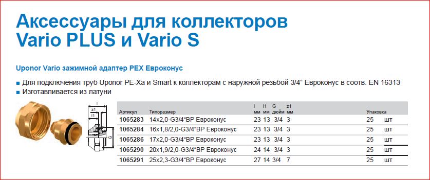 Полное описание товара Адаптер зажимной VARIO PEX 25х2.3 3/4' ВР евроконус (Uponor) 1065291
