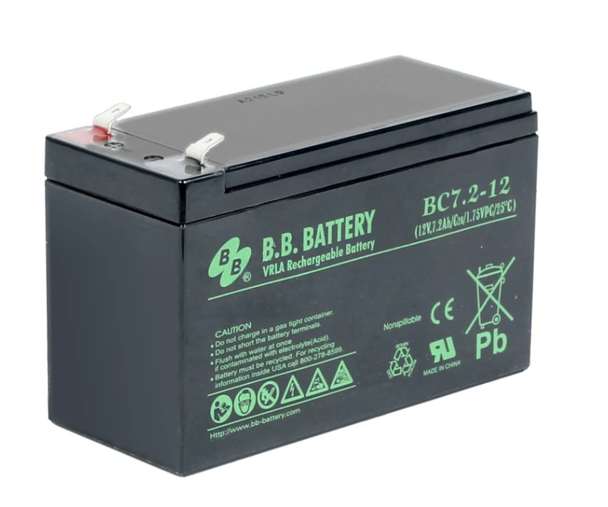 Стационарный свинцово-кислотный аккумулятор BB BATTERY BC7.2-12 с емкостью 7.2 Ач и напряжением 12 В подходит для использования в ИБП, лабораторном оборудовании, детских электромобилях и других игрушках. Он спроектирован специально для эксплуатации в режиме постоянного подзаряда, но также может работать и в циклическом. Благодаря технологи AGM (стекловолоконный сепаратор, удерживающий электролит) срок службы батареи составляет 5 лет. Герметичный корпус выполнен из ударопрочного нетоксичного термостойкого ABS-пластика. Аккумулятор B B BATTERY обладает низким саморазрядом (менее 3 процента в месяц). В случае глубокого разряда батарея может быть восстановлена специальным зарядом.