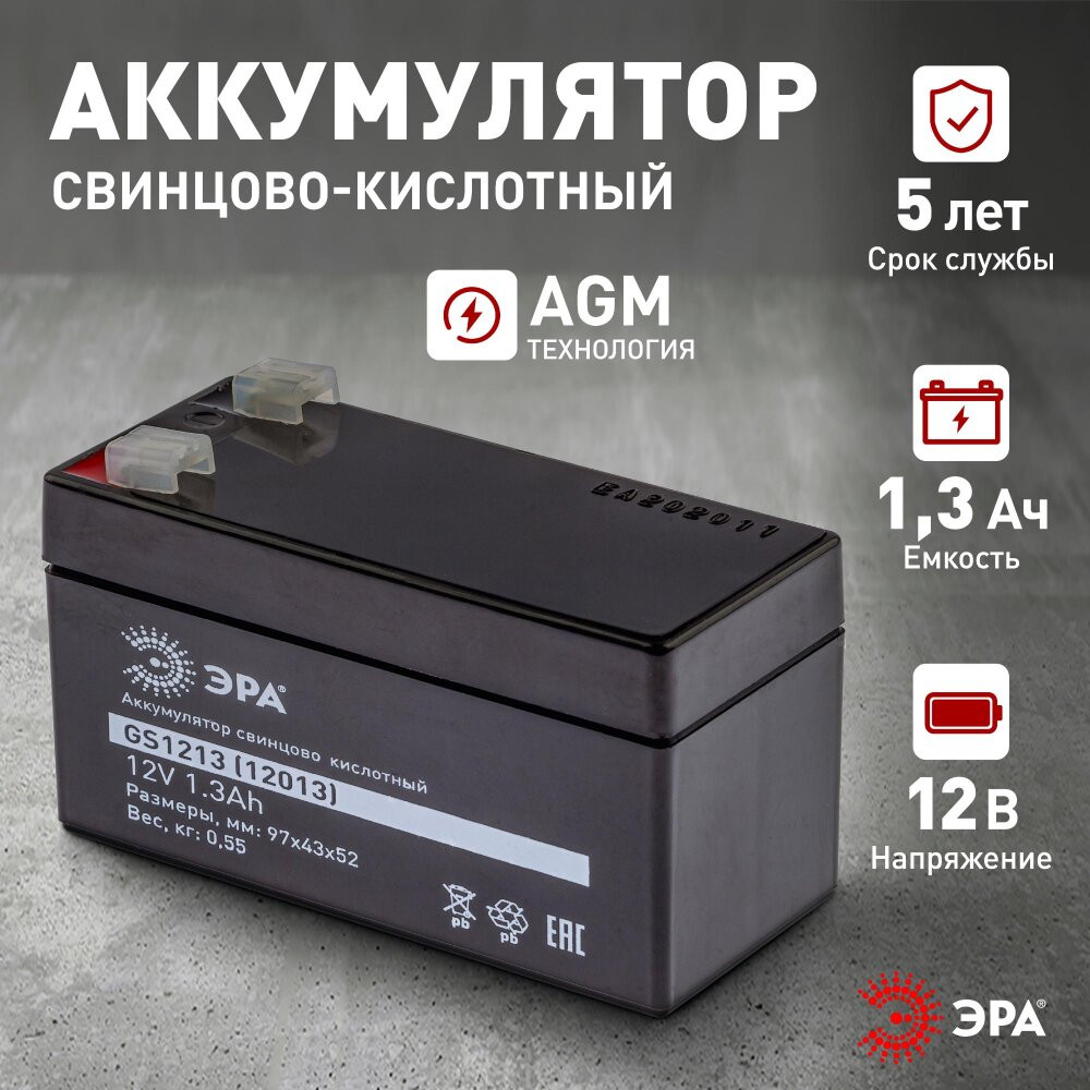 Полное описание товара Аккумулятор свинцово-кислотный 12V 1,3GS1213 (ЭРА) Б0050076