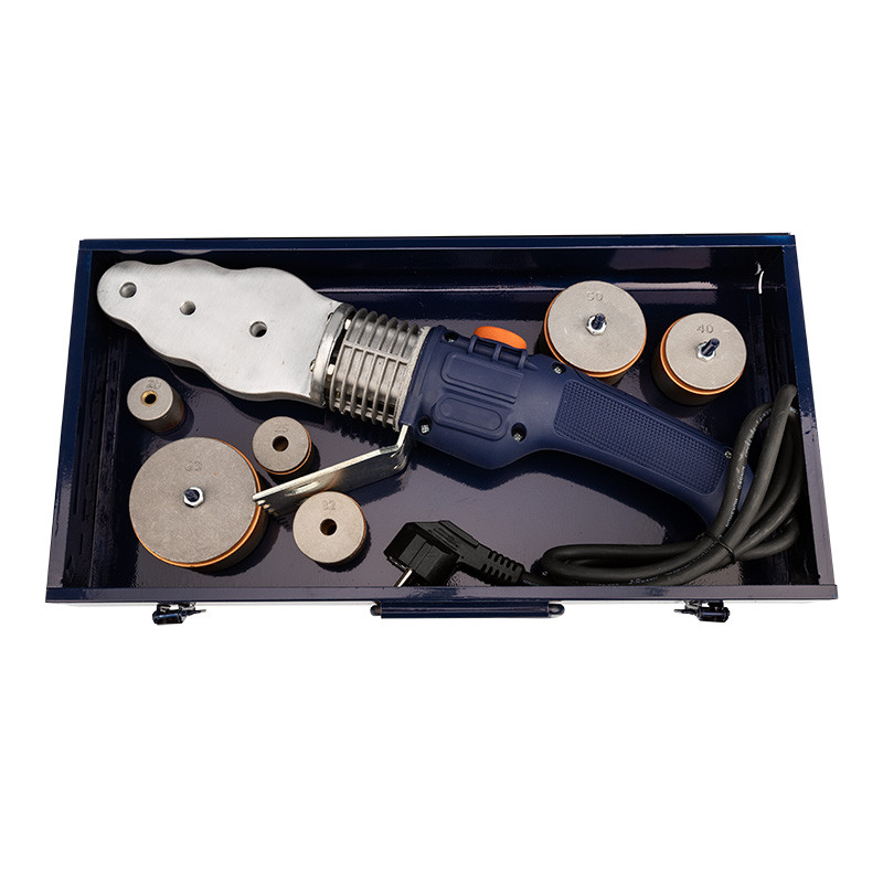 - Преимущества: Компактность|Наличие термостата|Работает более 100 000 циклов|В комплекте железный чемодан для хранения и транспортировки инструмента|Расширенный набор насадок, включающий 20, 25, 32, 40, 50 и 63 мм|Индикация включения и изменения режима