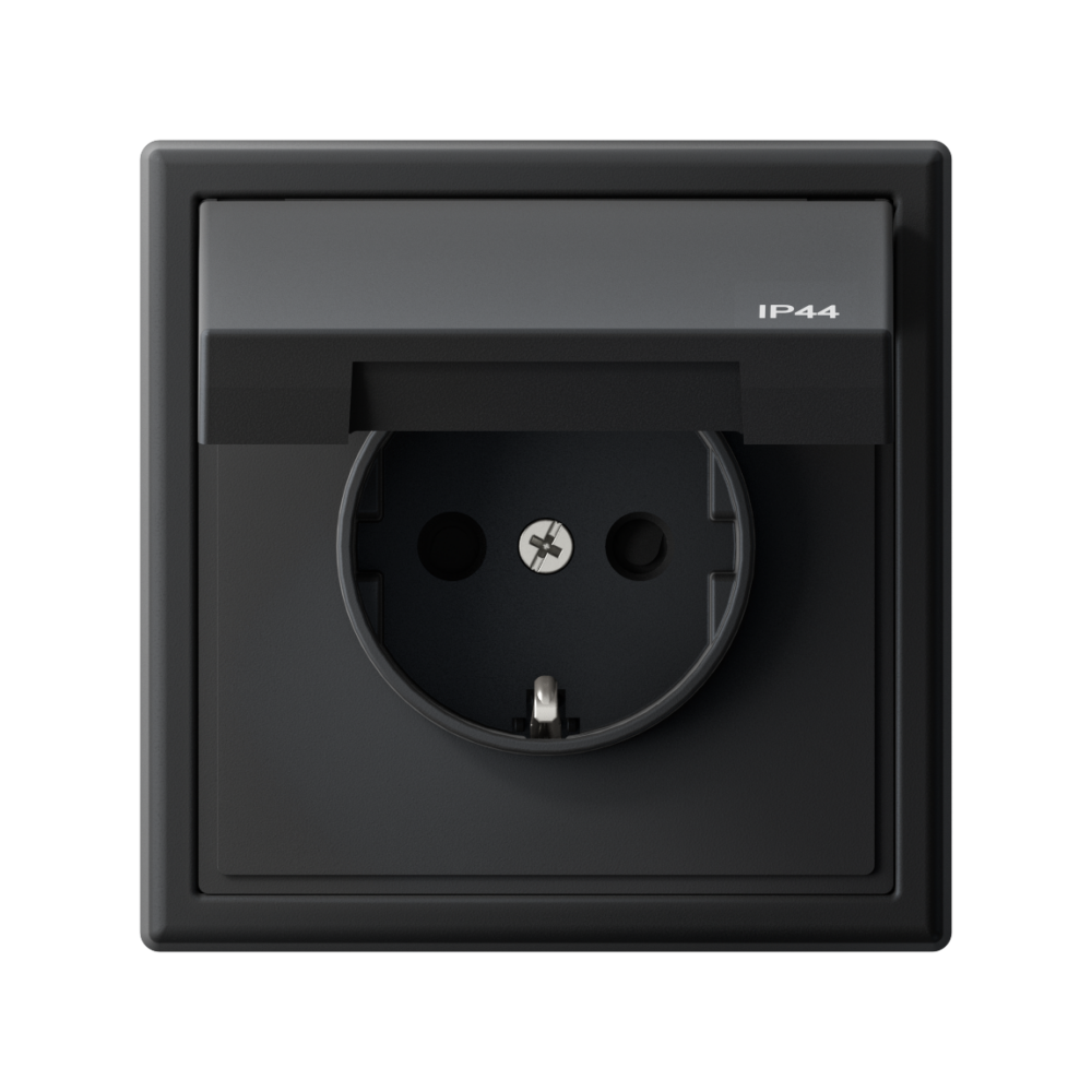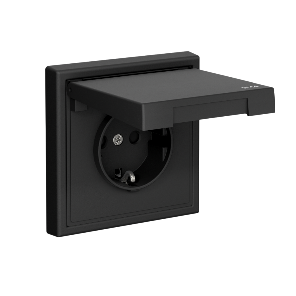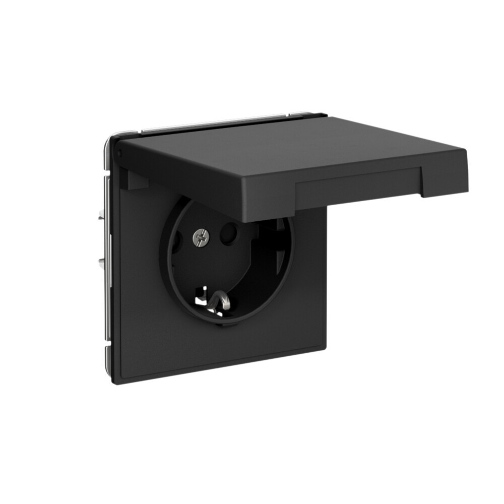 ARTGALLERY РОЗЕТКА с заземлением,со шторками,с крышкой, 16А, IP44, механизм, быстрозажимные клеммы, карбон (Systeme Electric) GAL441046S
