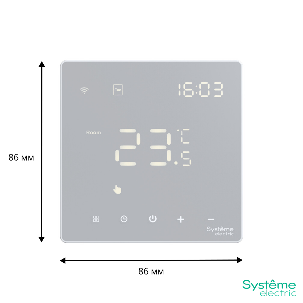Термостат для электрического теплого пола Systeme Electric серии ArtGallery в белом цвете с Wi-Fi, 16 А. Управлять теплым полом стало еще удобнее - большой дисплей позволяет удобно сделать все настройки на самом устройстве, можно установить расписание не неделю и включать теплый пол только утром и вечером, два датчика - встроенный и выносной позволяют более точно регулировать теплый пол, можно удаленно управлять теплым полом и включить его заранее по дороге домой.