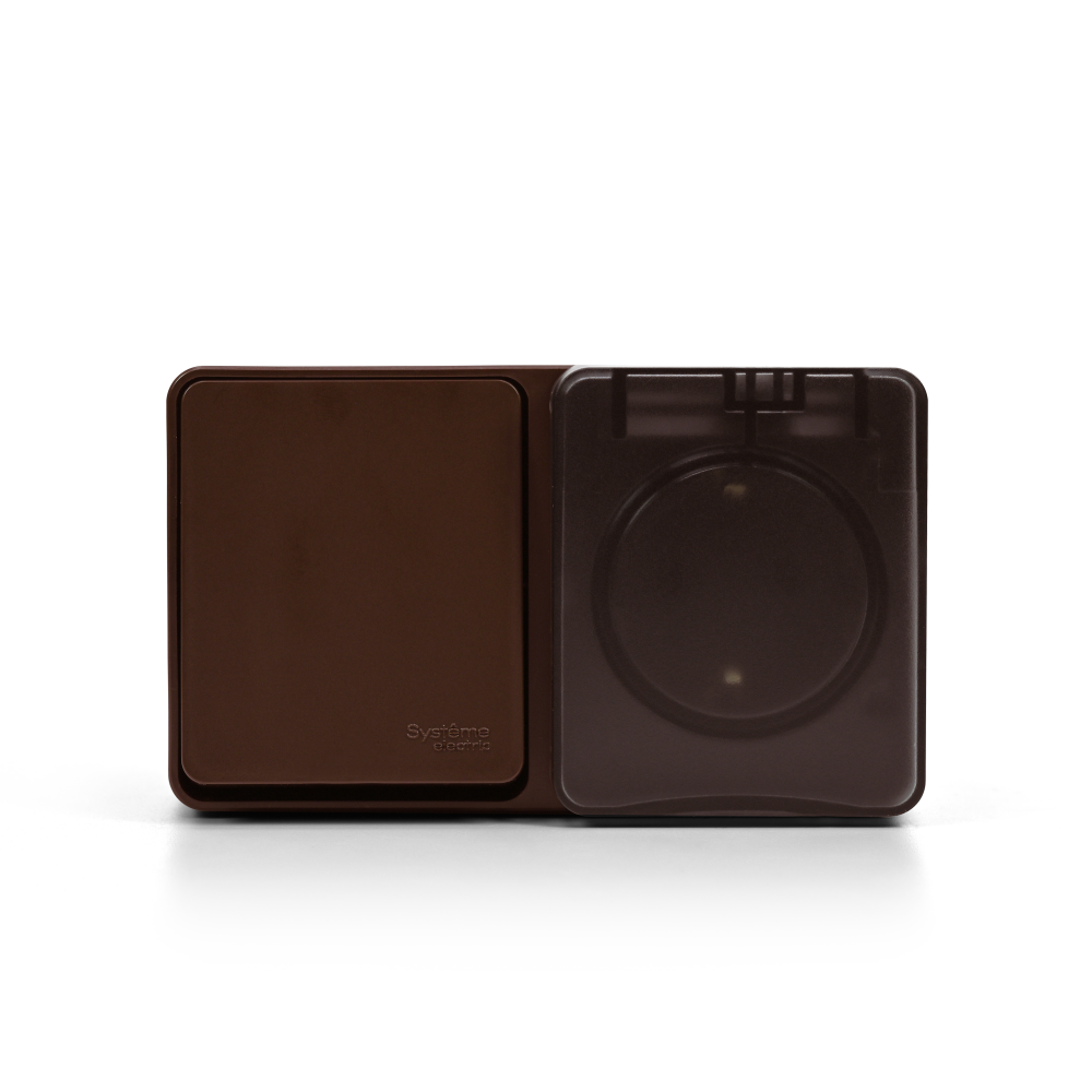 AtlasDesign PROFI IP54 О/У БЛОК: РОЗ. з/к со шт. 16А, ВЫКЛ.1-клав.10А, КОРИЧНЕВЫЙ (Systeme Electric) ATN546070