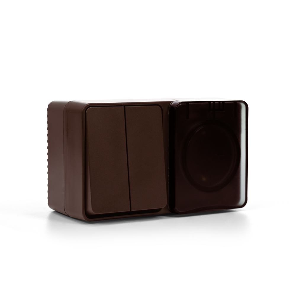 Блок для открытого монтажа из розетки с заземлением со шторками (16А, 250В) и 2-клавишного выключателя (10А). Степень защиты IP -54, Степень защиты IK - IK08. Продукция AtlasDesign Profi54 созданы специально для тех мест, где требуется повышенная защита от влаги и пыли. Уютная веранда в загородном доме, уличное кафе, любимый гараж или мастерская – выключатели и розетки будут обеспечивать надежную защиту и радовать глаз современным дизайном. Коричневый цвет гармонично впишется в любую обстановку.