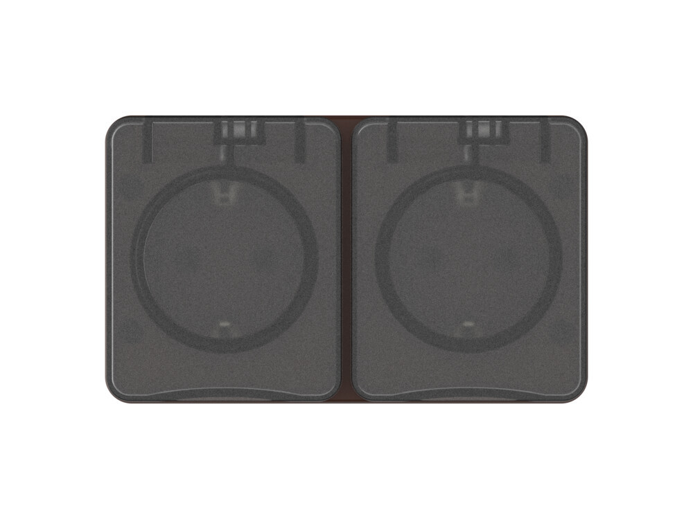 Розетка двойная с заземлением со шторками для открытого монтажа, 16А, 250В. Степень защиты IP -54, Степень защиты IK - IK08. Продукция AtlasDesign Profi54 созданы специально для тех мест, где требуется повышенная защита от влаги и пыли. Уютная веранда в загородном доме, уличное кафе, любимый гараж или мастерская &ndash, выключатели и розетки будут обеспечивать надежную защиту и радовать глаз современным дизайном. Коричневый цвет гармонично впишется в любую обстановку.