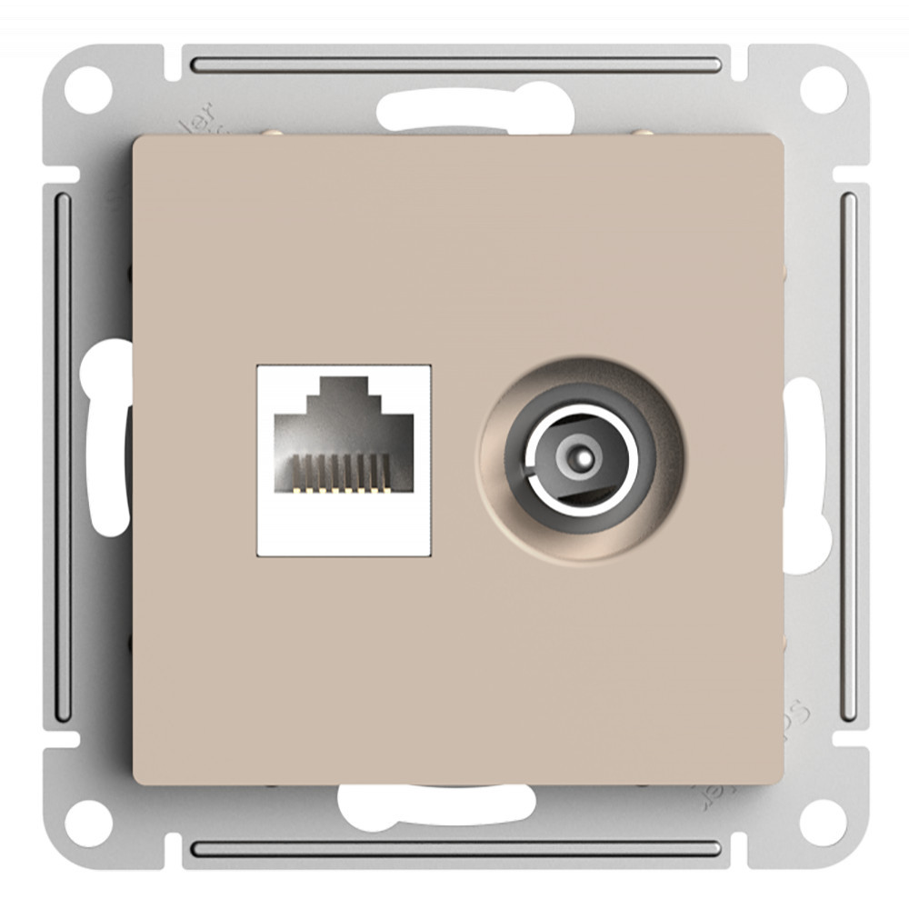 ATLASDESIGN РОЗЕТКА двойная ТВ + компьютерная RJ45, кат. 5Е, ПЕСОЧНЫЙ (Systeme Electric) ATN001289