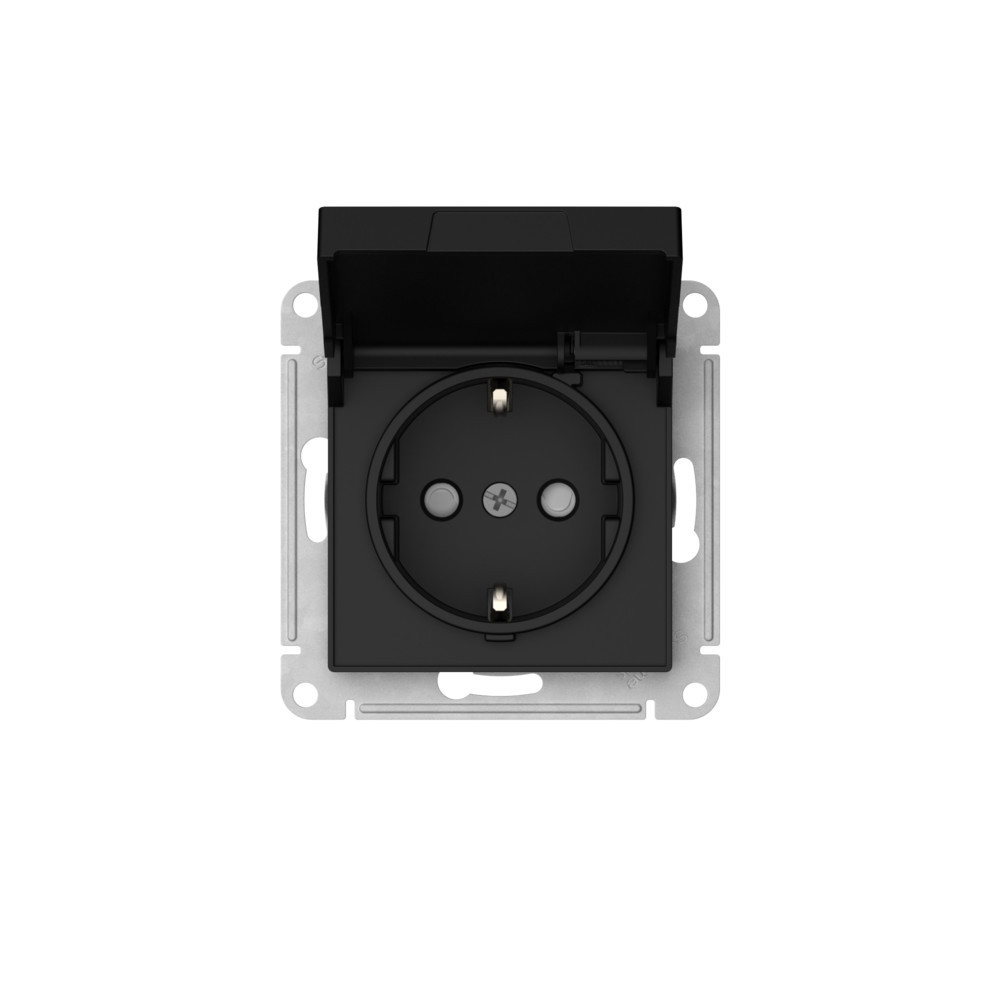 ATLASDESIGN РОЗЕТКА с заземл. со шторк. с крышкой, 16А, IP20,мех., быстрозажимные клеммы, КАРБОН (Systeme Electric) ATN001046S