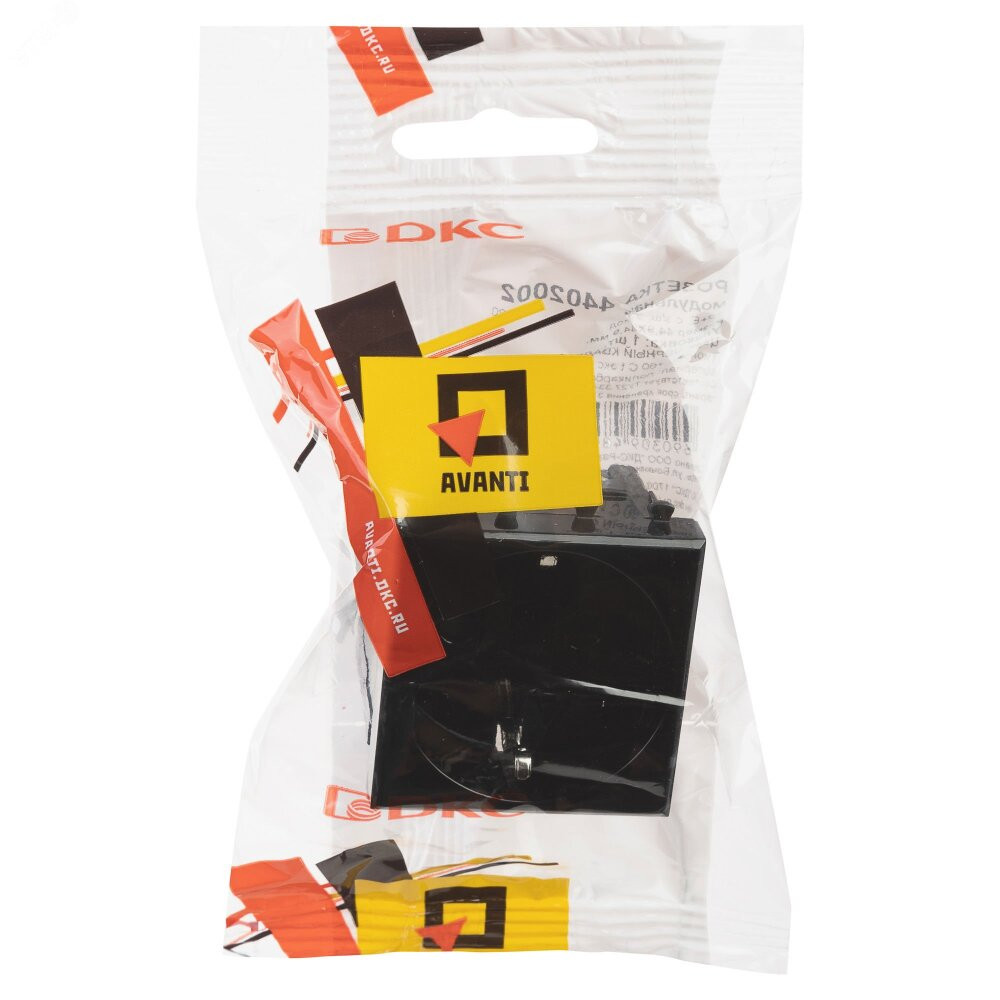 Полное описание товара Avanti Розетка ''Черный квадрат'', 2P+E, с защитными шторками, 2 модульная (DKC) 4402002