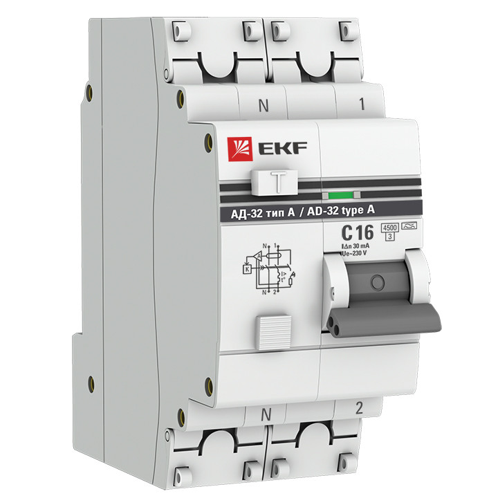 Полное описание товара Автомат дифференциальный АД-32 1P+N 16А/30мА (тип А) PROxima (EKF) DA32-16-30-a-pro