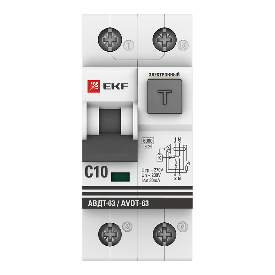 Полное описание товара Автоматический выключатель дифференциального тока АВДТ-63 10А/30мА C A 6кА (EKF) DA63-10-30e