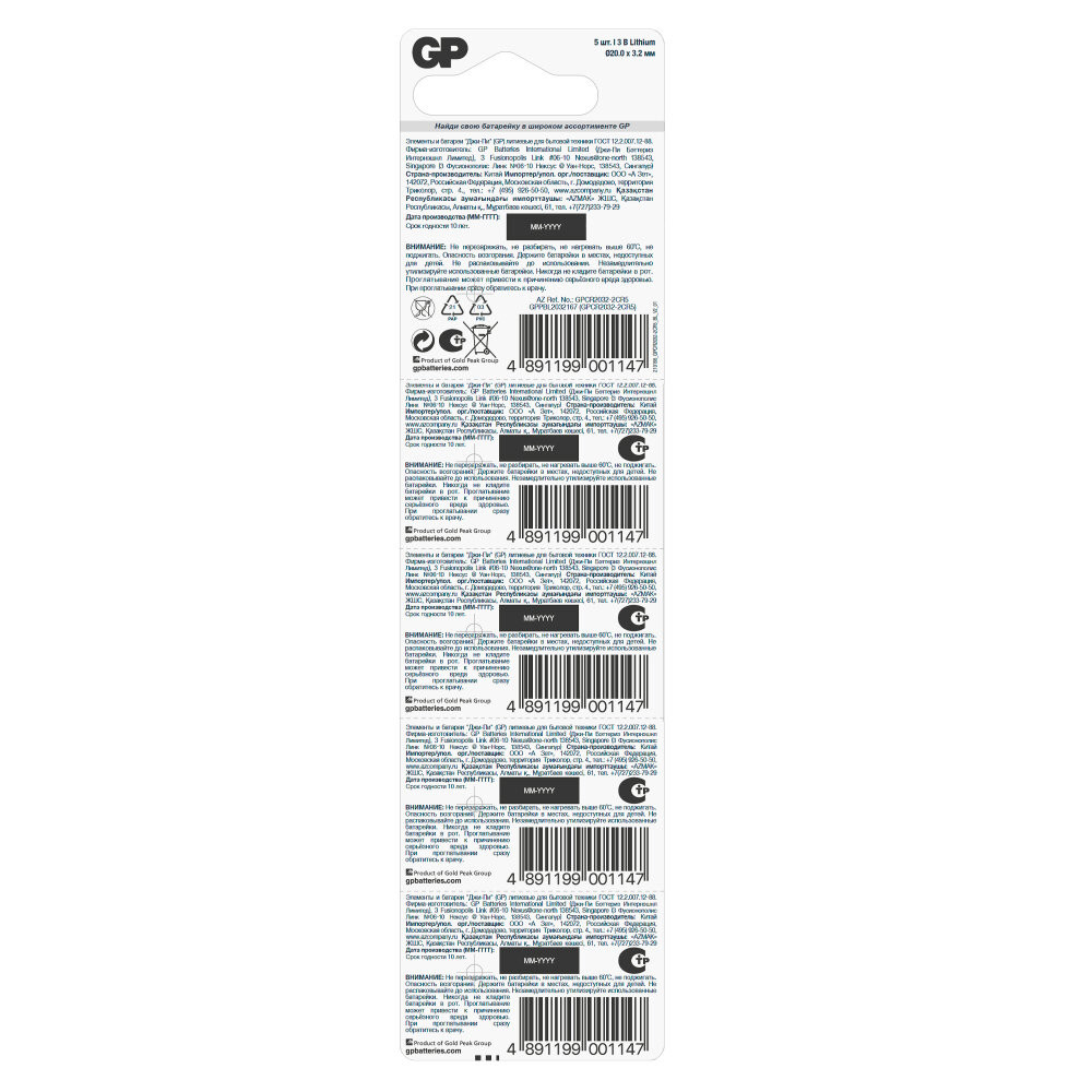 Полное описание товара Батарейка дисковая литиевая GP Lithium CR2032 (GP) 9036