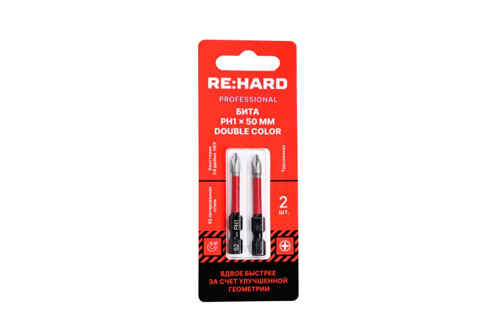 Бита для шуруповерта торсионная (ударная) PH1х50 мм двойной цвет S2, 2 шт. (RE:HARD) RH50PH1TDC