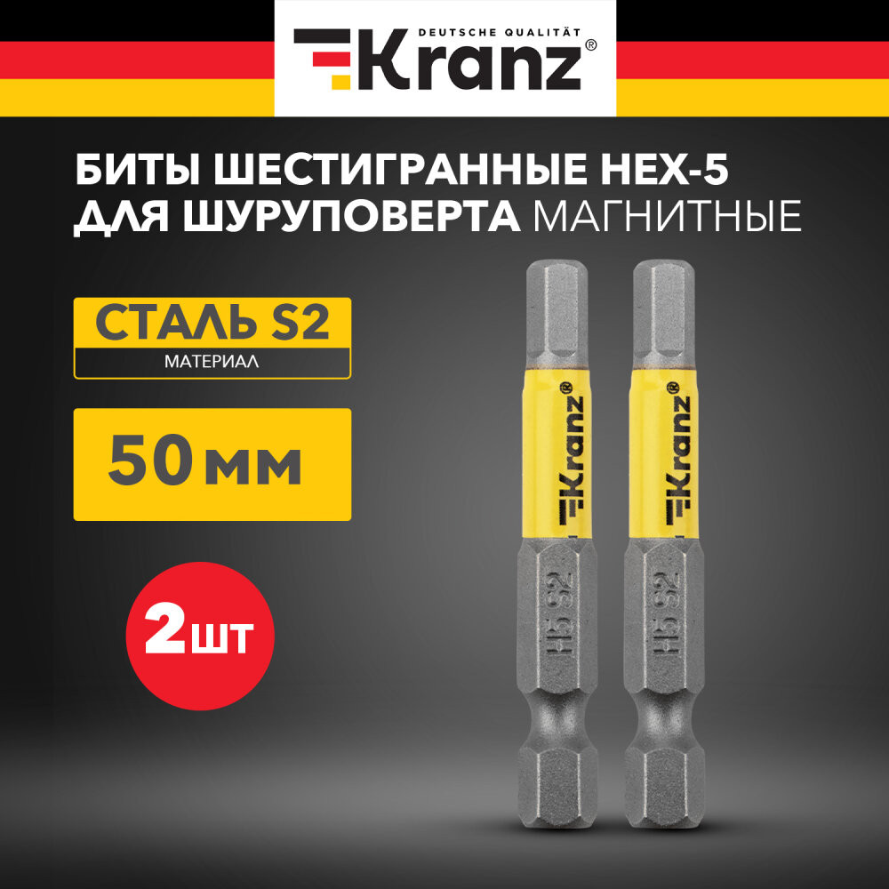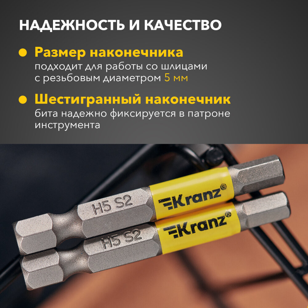 Бита шестигранная для шуруповерта HEX5х50 мм (упак. - 2 шт.) (Kranz) KR-92-0423-1