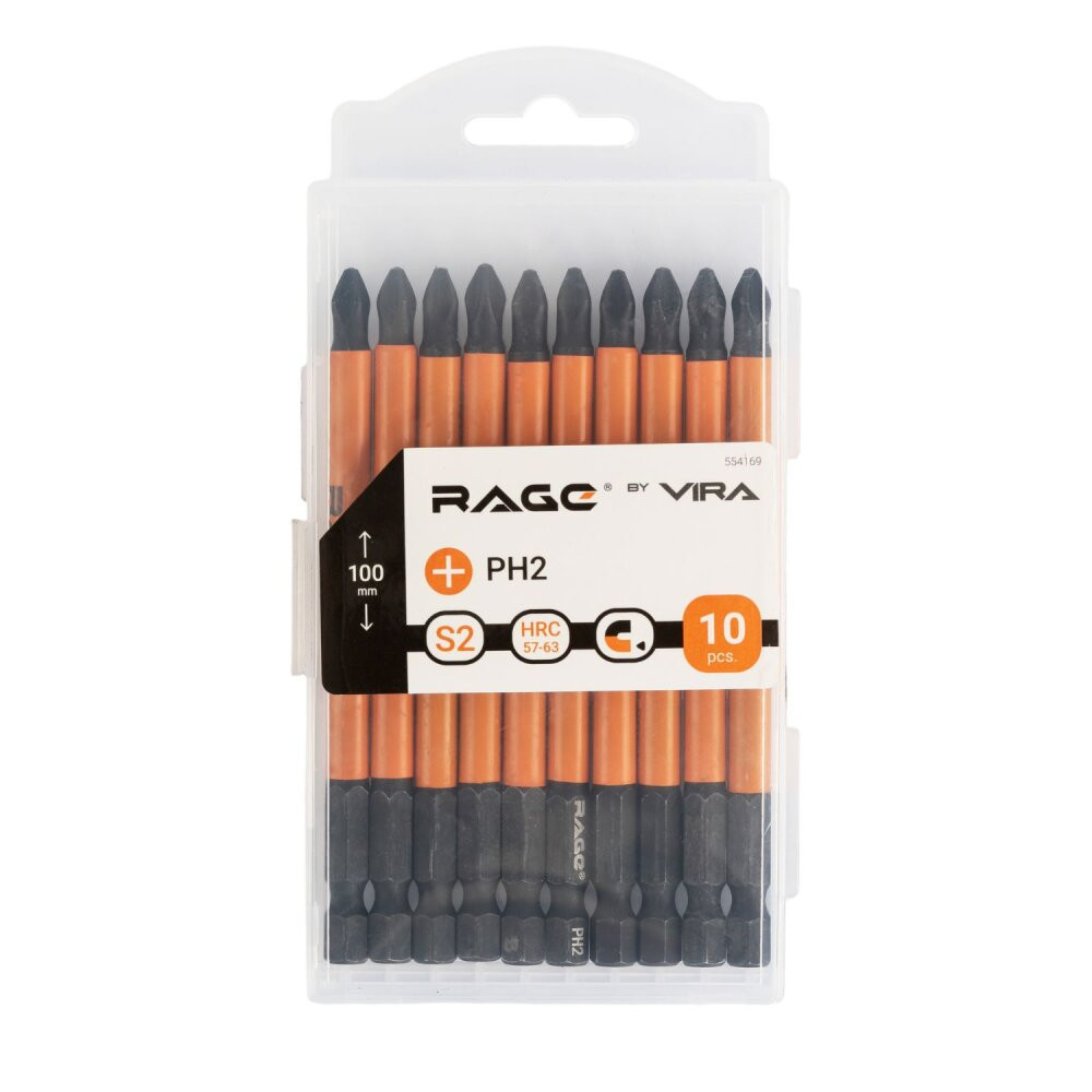 Биты магнитные S2 PH2 x 100 мм 10 шт (Rage) 554169