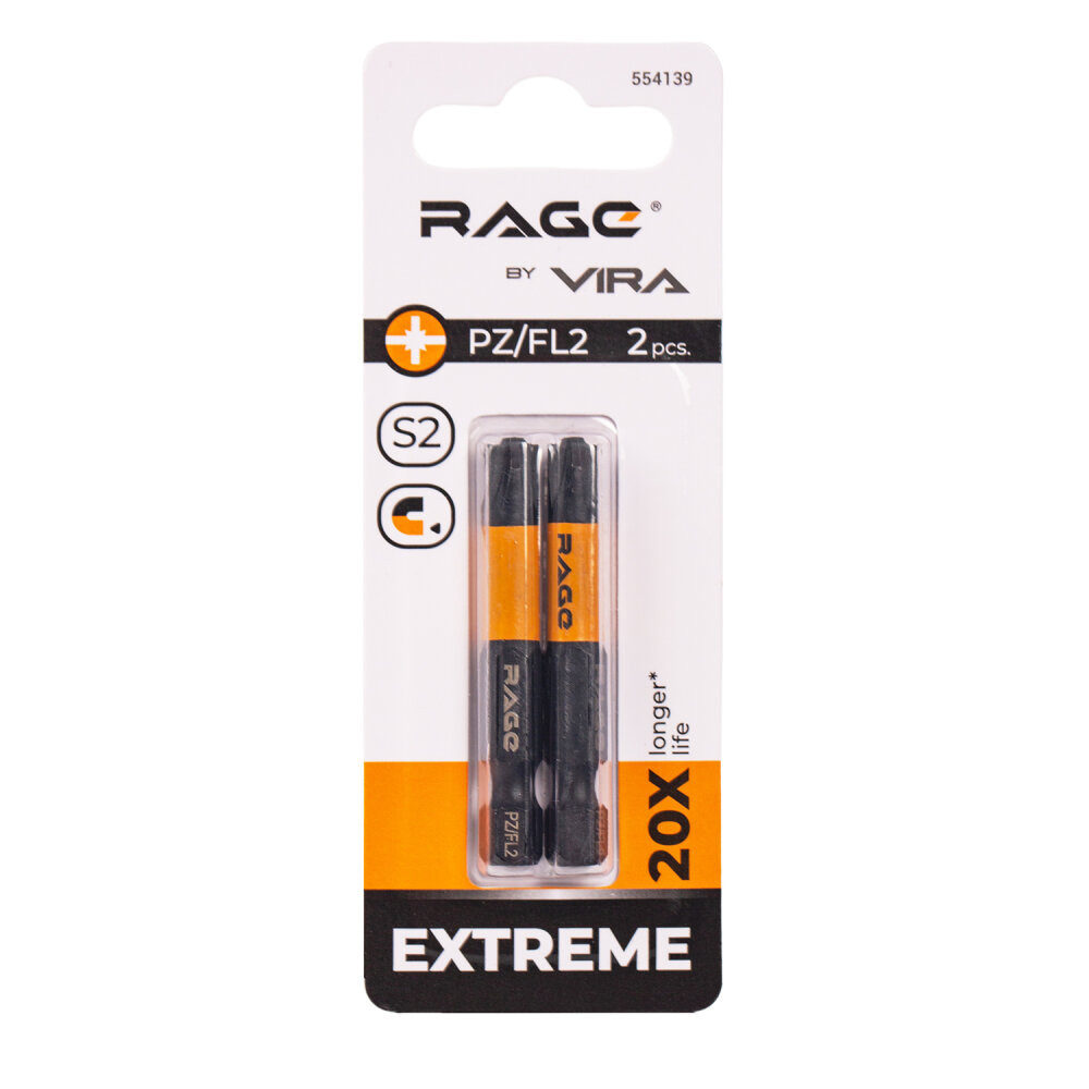 Биты магнитные RAGE by VIRA используются при монтаже метизов. Крестообразный шлиц PZ/FL позволяет затягивать винты с большим усилием, без нажатия, и имеет более устойчивое сцепление с крепежом, что уменьшает износ сцепившихся элементов. Фосфатное покрытие бит повышает износостойкость, увеличивает твердость, предотвращает коррозию. Магнитное свойство позволяет удерживать шурупы на конце биты, поэтому упрощается и ускоряется процесс работы.