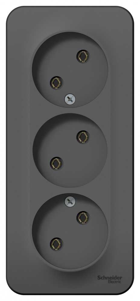 Розетка Systeme Electric (ранее Schneider Electric) BLANCA (антрацит, открытой установки) трехместная, без шторок и заземления, с изолирующей пластиной предназначена для сетей до 250В, на ток до 16А. Трехместная розетка позволяет подключить три устройства в одном месте. Она изготовлена из ABS-пластика, проста в установке и удобна в применении.