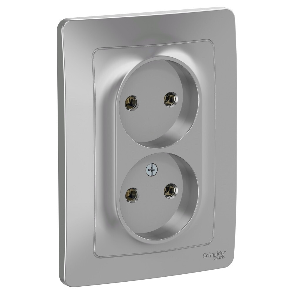 BLANCA скрытой установки розетка двойная без заземления без шторок, 16А, 250В, алюминий (Systeme Electric) BLNRS000023