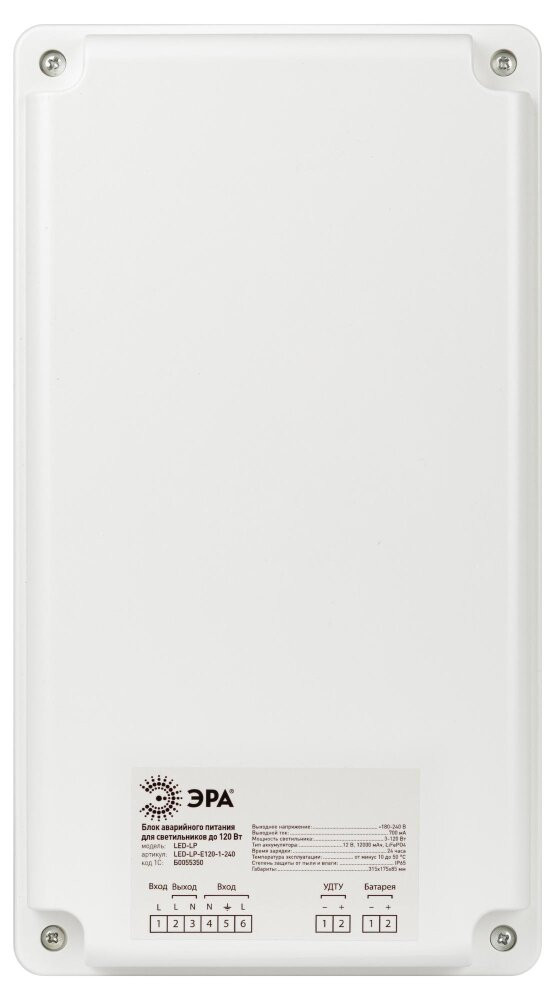 Полное описание товара Блок аварийного питания БАП для светильников универсальный до 120 Вт 1час IP65 (ЭРА) Б0055350