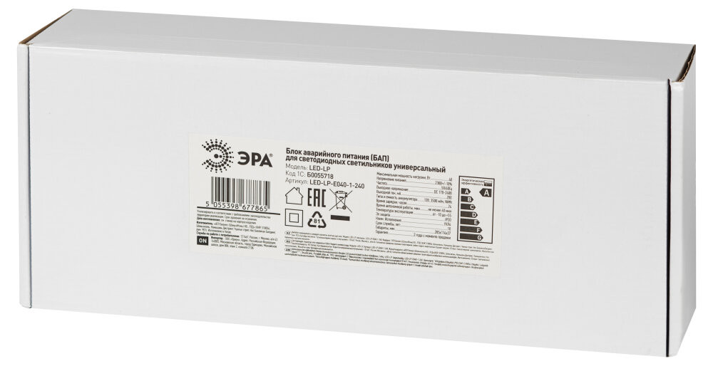 Полное описание товара Блок аварийного питания БАП для светильников универсальный до 40 Вт 1час IP20 (ЭРА) Б0055718