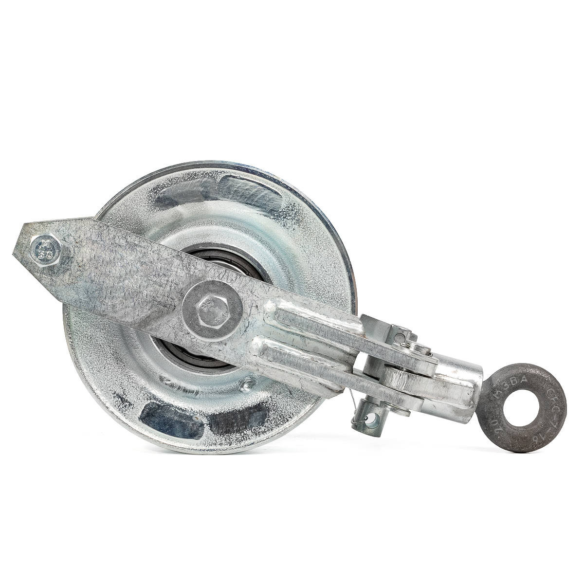 - Краткая характеристика: •Все детали блока изготовлены из стали; •Наличие быстроразъемного узла для отведения блока; •Грузовая траверса выполнена в виде ушка со свободой вращения 360°; •Возможность сочленения со стандартными элементами сцепной линейной арматуры; •Закрытые шарикоподшипники; •Рабочая нагрузка: 30 кН; •Диаметр каната: до 18 мм; •Диаметр ролика по ручью: 120 мм;