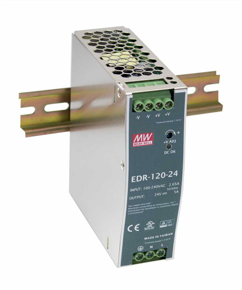 Серии блоков питания на DIN-рейку EDR эконом серия для индустриального применения. Блоки питания EDR обладают высокой эффективностью (до 94%), стандартный температурный диапазон. Функционал серии EDR аналогичен серии NDR, но без дополнительных функций контроля состояния, что делает их гораздо доступнее.