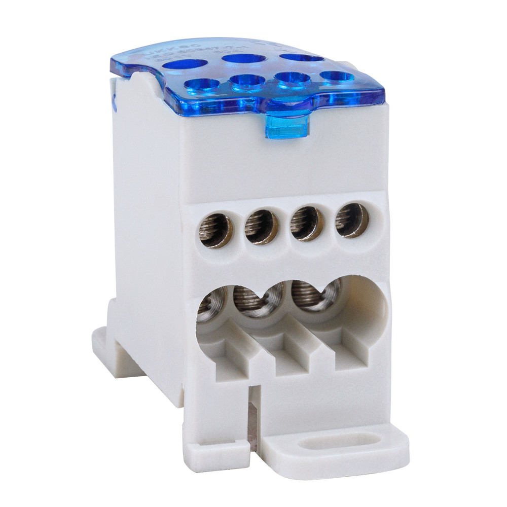 Распределительные блоки используются в качестве вводных и распределительных устройств при сборке низковольтного комплектного устройства (НКУ). Основное назначение – элемент переходного соединения проводников с жилы большего сечения на несколько жил меньшего сечения, а также в качестве дополнительного элемента для подключения и установки промышленного оборудования и организации главной заземляющей шины (ГЗШ).