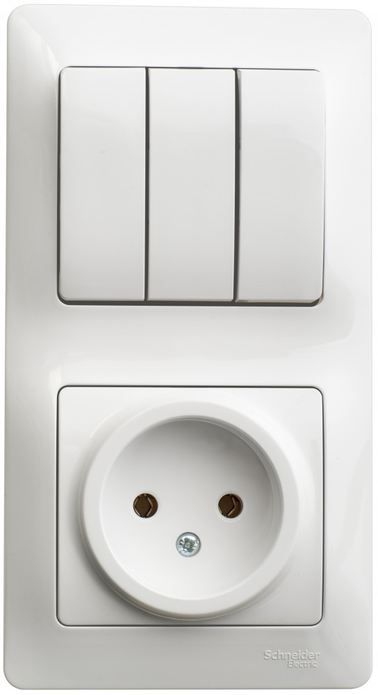 Полное описание товара Блок: розетка + выключатель трехклавишный белый (Systeme Electric) GSL000176