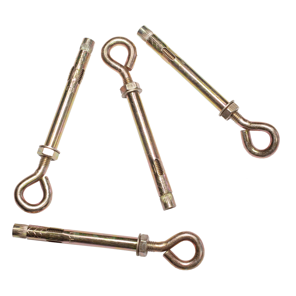 Анкерный болт с кольцом предназначен для крепления различных тяжеловесных конструкций, подвесных систем, крепления конструкций на растяжках в плотных строительных материалах. Может выполнять две функции. Во-первых, с помощью этого анкера можно привернуть какое-либо изделие или деталь. Во-вторых, создается точка крепления для подвесных конструкций. Устанавливается в предварительно просверленное отверстие.