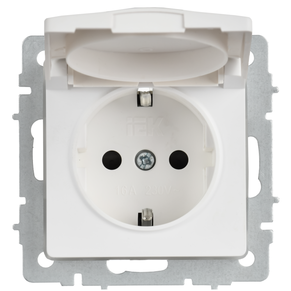 BRITE Розетка 1-местная с заземлением с защитными шторками и крышкой 16А IP44 РСбш10-3-44-БрАБ арктический белый IEK (IEK) BR-R16-16-44-K91