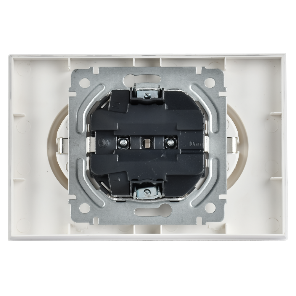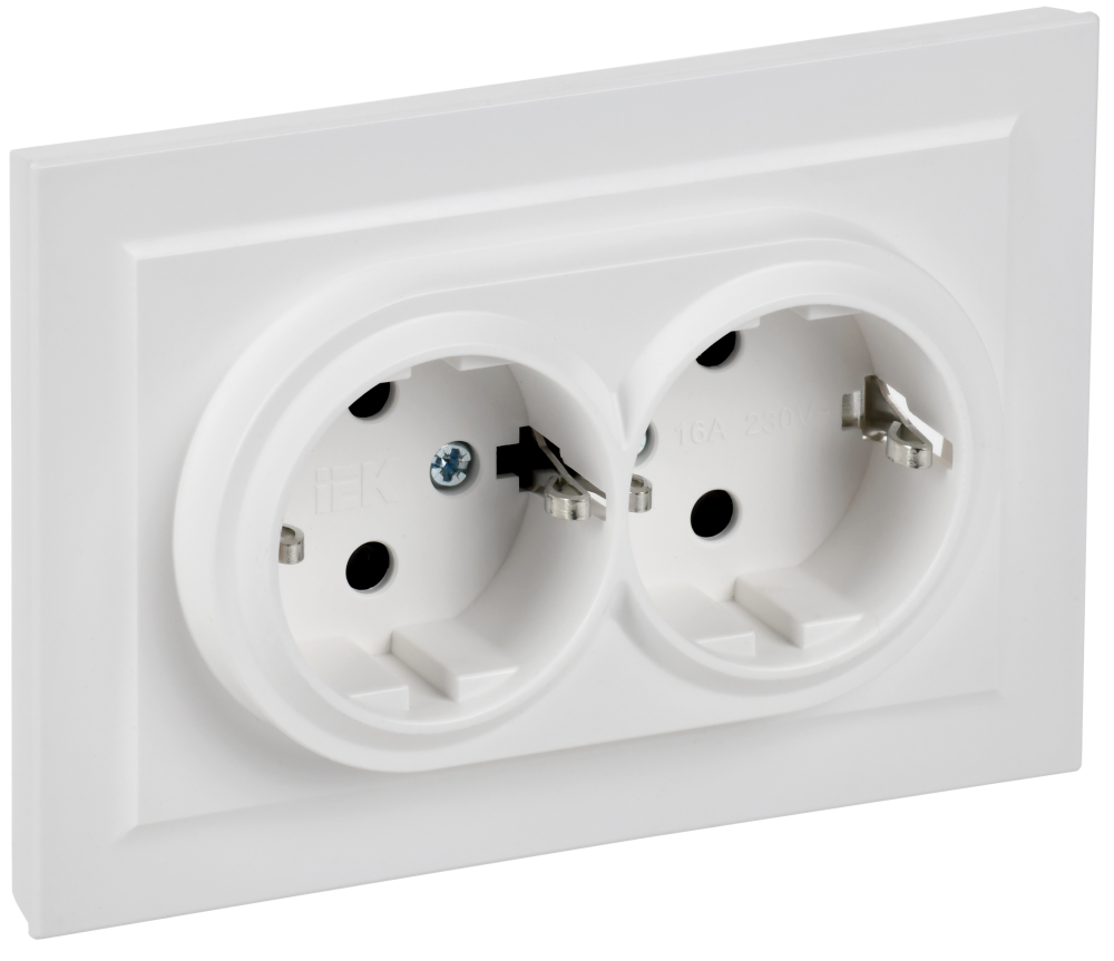 Полное описание товара BRITE Розетка 2-местная с заземлением с защитными шторками 16А в сборе РСш12-3-БрАБ арктический белый IEK (IEK) BR-R24-16-K91-F