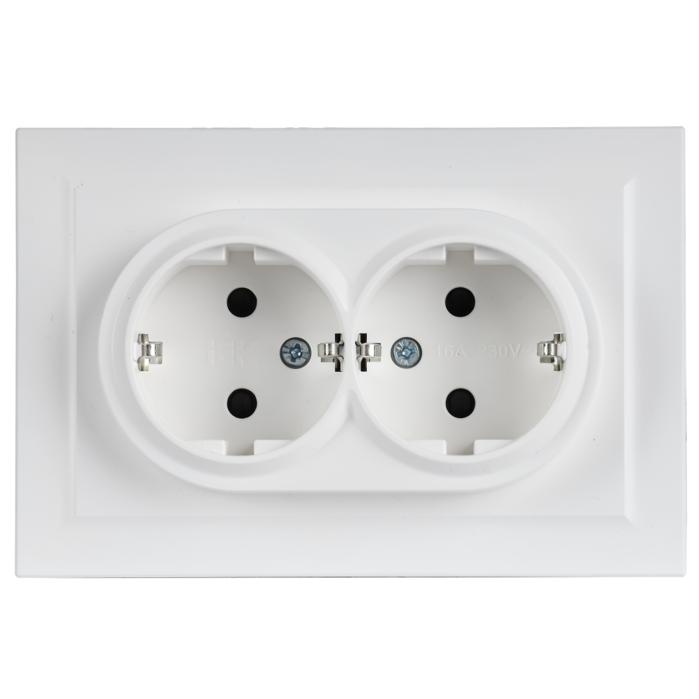 BRITE Розетка 2-местная с заземлением с защитными шторками 16А в сборе РСш12-3-БрАБ арктический белый IEK (IEK) BR-R24-16-K91-F