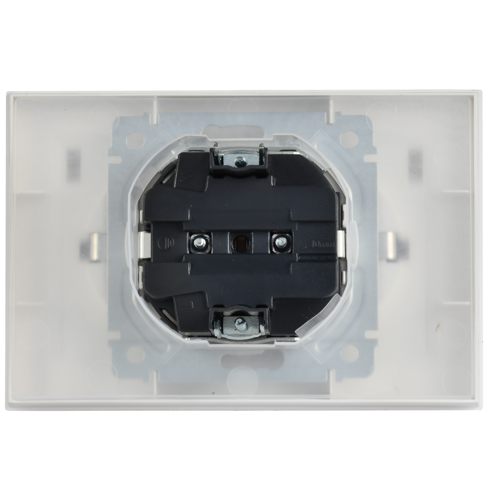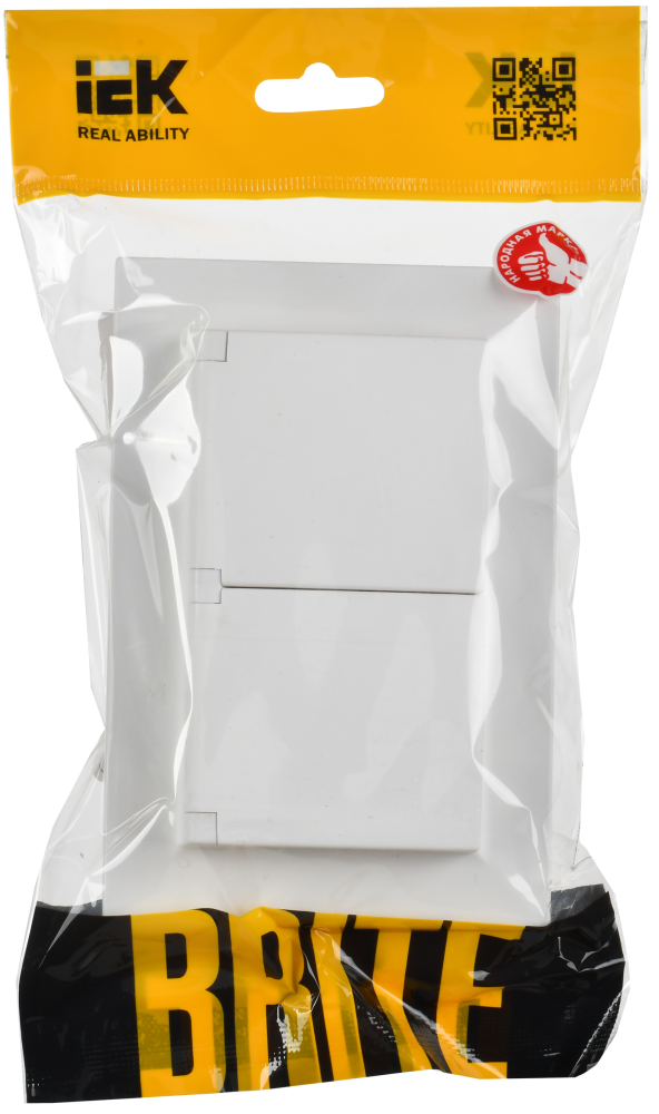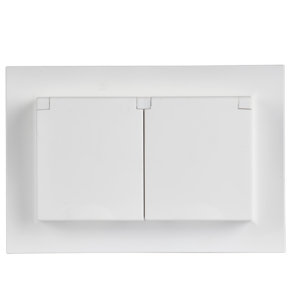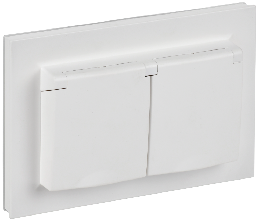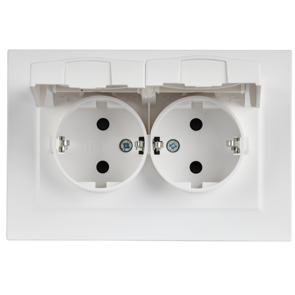 Полное описание товара BRITE Розетка 2-местная с заземлением с защитными шторками и крышкой 16А в сборе IP44 РСбш12-3-44-БрАБ арктический белый IEK (IEK) BR-R26-16-44-K91-F
