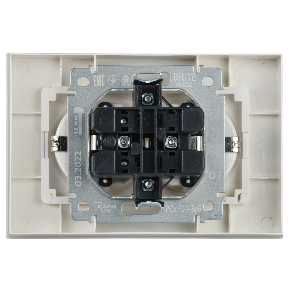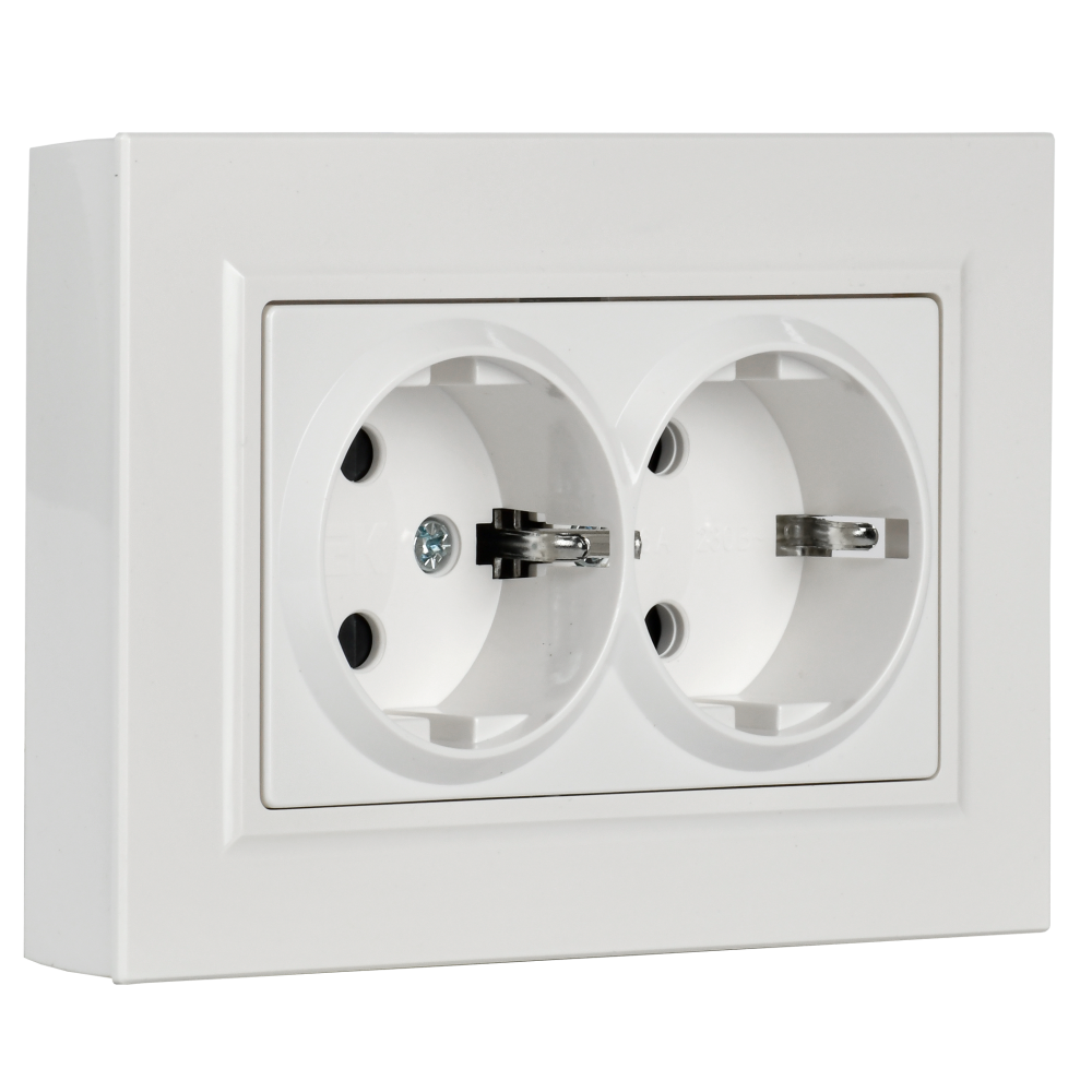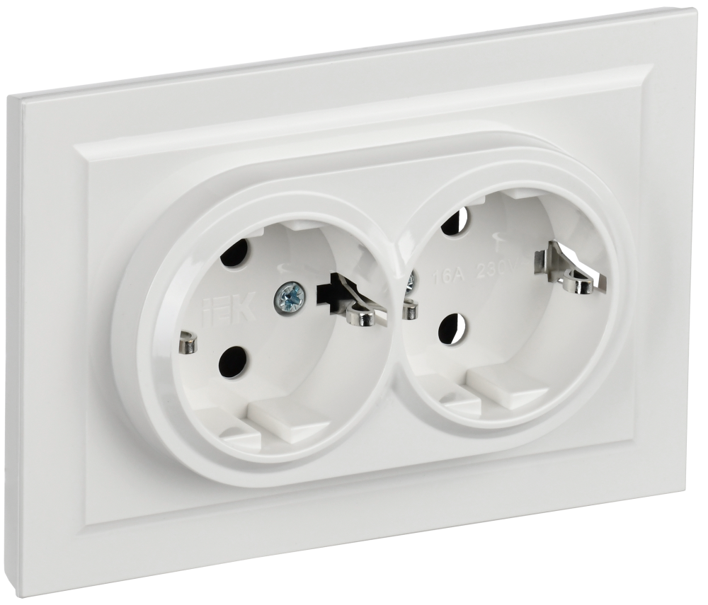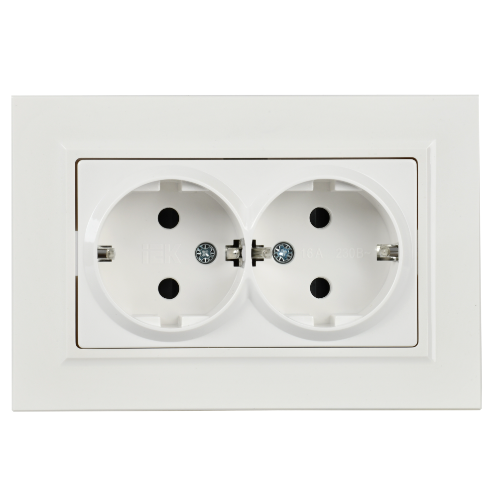 BRITE Розетка двойная с заземлением с защитными шторками 16А в сборе РСш12-3-БрБ белый (IEK) BR-R24-16-K01-F