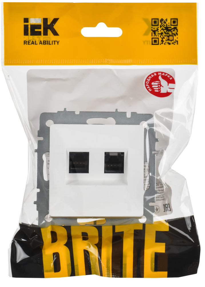 Полное описание товара BRITE Розетка компьютерная двойная кат.5E RJ45 РК10-2-БрАБ арктический белый IEK (IEK) BR-K20-1-K91