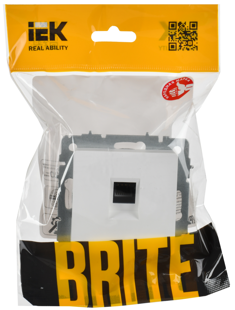 BRITE Розетка компьютерная RJ45 кат.5E РК10-БрАБ арктический белый IEK (IEK) BR-K10-1-K91