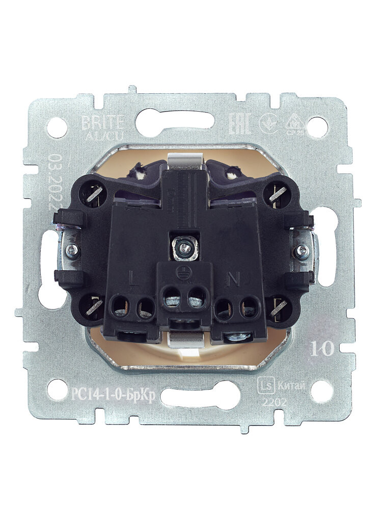 Полное описание товара BRITE Розетка с заземлением с защитными шторками 16А РС14-1-0-БрКр бежевый (IEK) BR-R14-16-K10