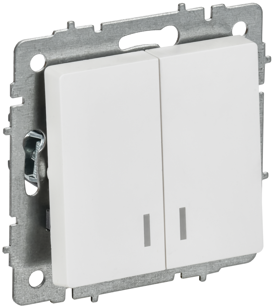 Полное описание товара BRITE Выключатель 2-клавишный с индикацией 10А ВС10-2-1-БрАБ арктический белый IEK (IEK) BR-V20-1-10-K91