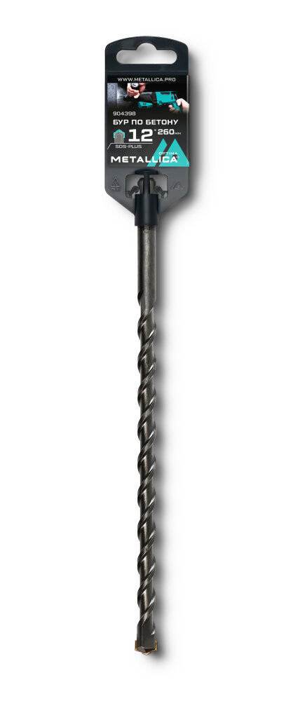 Полное описание товара Бур по бетону SDS-plus 12 х260/200 мм, напайка с центром, 2 спирали (METALLICA) 904398