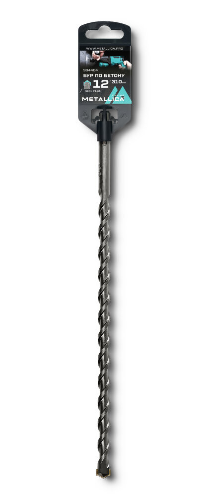 Бур по бетону SDS-plus 12 х310/250 мм, напайка с центром, 2 спирали (METALLICA) 904404
