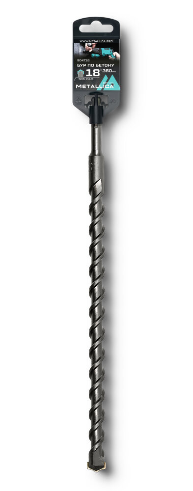 Полное описание товара Бур по бетону SDS-plus 18 х360/300 мм, напайка с центром, 2 спирали (METALLICA) 904718