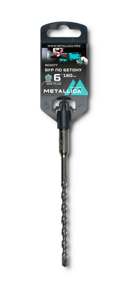 Бур по бетону SDS-plus 6х160/100 мм, напайка с центром, 2 спирали (METALLICA) 904077