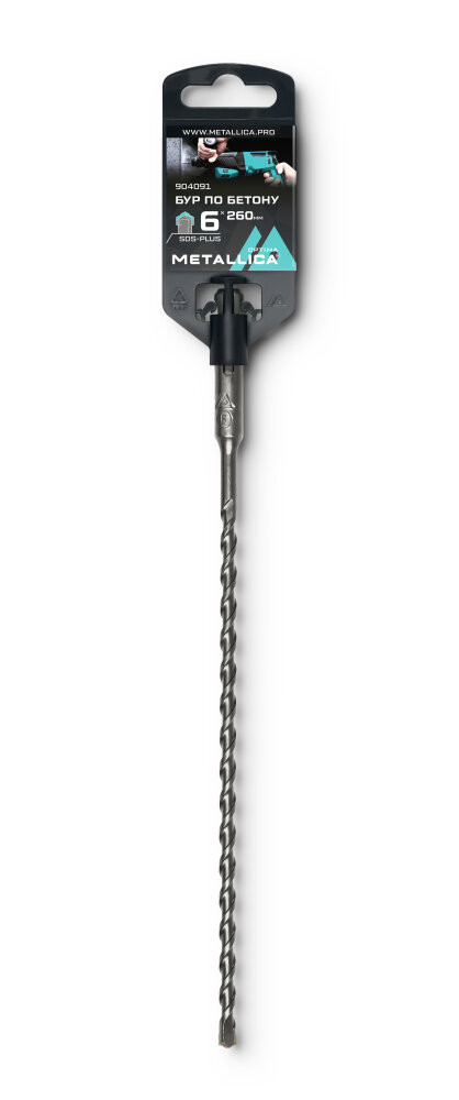 Бур по бетону SDS-plus 6х260/200 мм, напайка с центром, 2 спирали (METALLICA) 904091