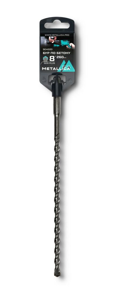 Бур по бетону SDS-plus 8х260/200 мм, напайка с центром, 2 спирали (METALLICA) 904220