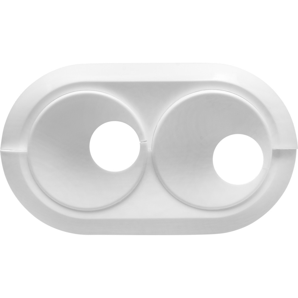 Декоративная чашка отражатель двойная 20 с эксцентриковой вставкой MasterProf пластик, белая используется в качестве декоративного экрана в местах подключения к водопроводу бытовых кранов, резьбовых эксцентриков сантехнических смесителей и защищает от попадания пыли и грязи в местах стыковки стены и трубопровода. Чашка должна плотно прилегать к стене.