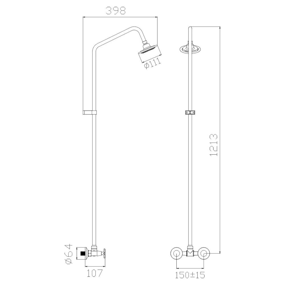 Cистема душевая со смесителем с 2-мя маховиками без излива с лейкой тропической (Антей) 357350-ANT