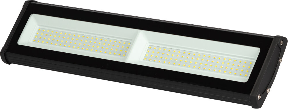 Светильник светодиодный высокомощный. Тип светильника - Замена ГСП, ЖСП, СДГ. Область применения - Предназначен для общего освещения складских и производственных помещений, в т. ч. открытых пандусов, торговых и выставочных павильонов, гипермаркетов, спортивных сооружений и т. п.