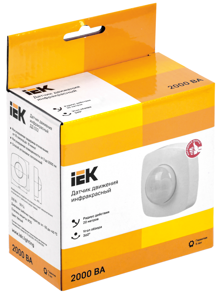 Полное описание товара Датчик движения ДД 022 белый 2000 Вт 360 градусов 4мх20м IP20 (IEK) LDD11-022-2000-001