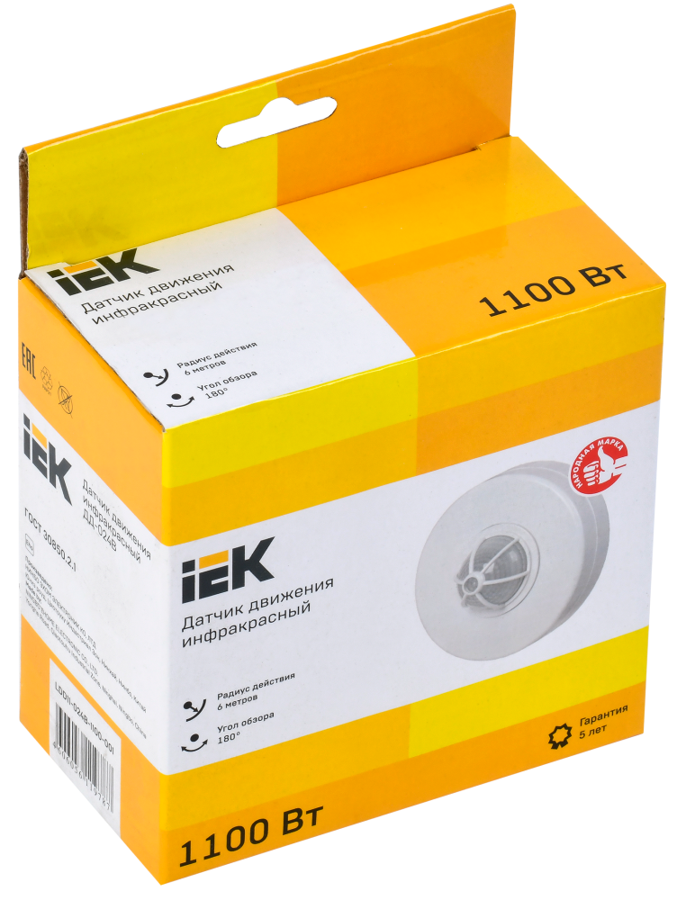 Полное описание товара Датчик движения ДД 024В белый, максимальная нагрузка 1100 Вт, угол обзора 180-360 градусов, дальность 6м, IP33 (IEK) LDD11-024B-1100-001