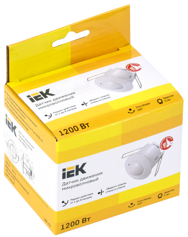 Полное описание товара Датчик движения ДД-МВ 301 белый, 1200 Вт, 360 градусов, 8М,IP20 (IEK) LDD11-301MB-1200-001
